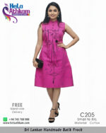 Sri Lankan handmade Batik Frock designed using pink and black colors, inspired by the shapes of an artistic female figure manufactured by “Hela Athkam” using traditional Sri Lankan Batik techniques.
