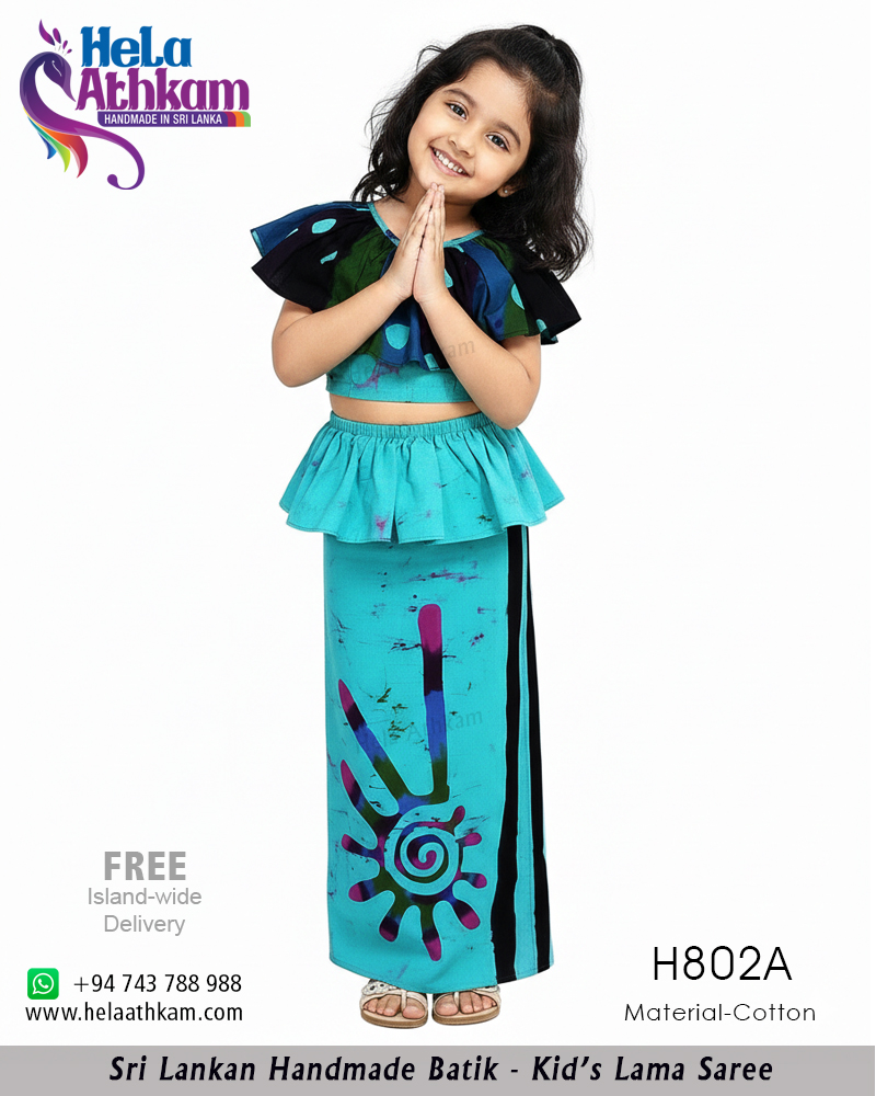 * An attractive children’s batik Redda Hatte/Lama Sare designed in sky blue color with a sunrise design for those who love simple designs with Sri Lankan identity for cute little girls.