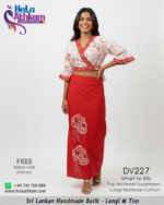 Red color handmade Batik Lungi Kit manufactured by “Hela Athkam” using traditional Sri Lankan Batik techniques.