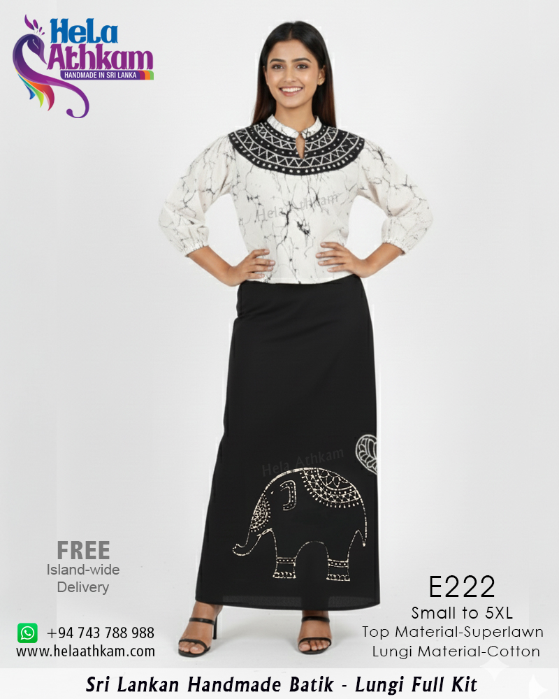 Elephant Design Sri Lankan handmade Lungi Full Kit manufactured by “Hela Athkam” using traditional Sri Lankan Batik techniques.