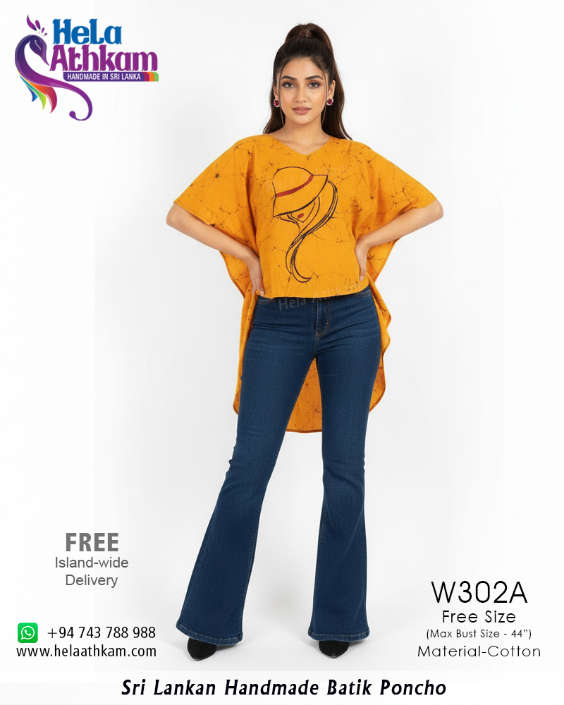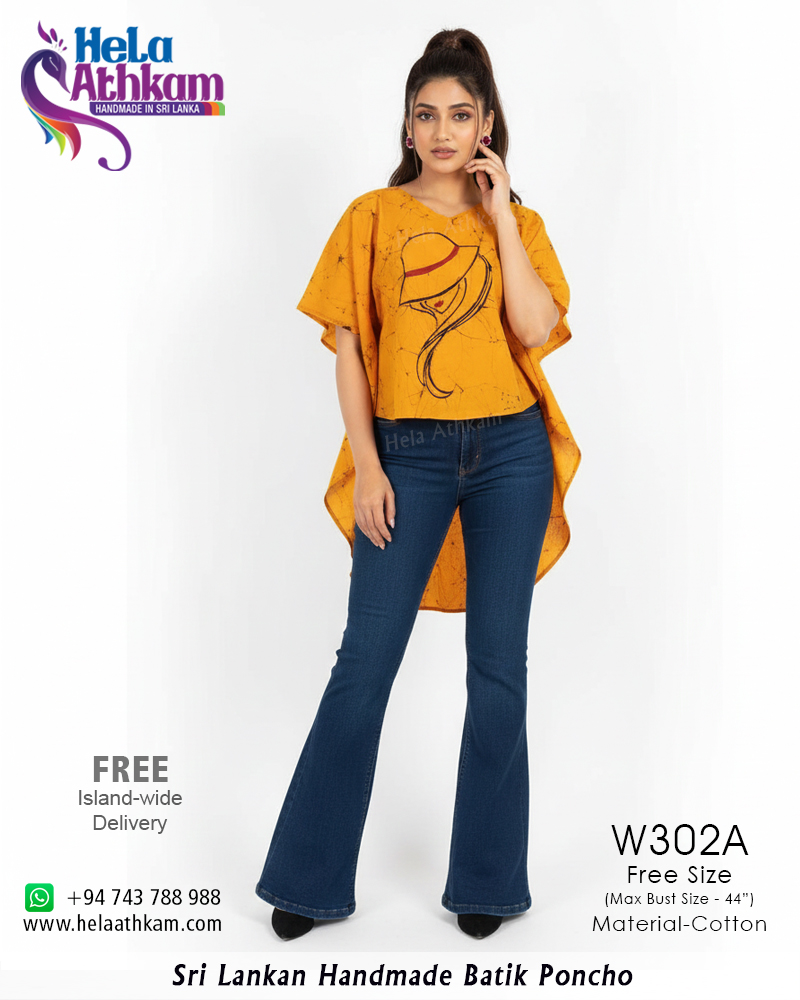 ශ්‍රී ලාංකීය සාම්ප්‍රදායික බතික් ක්‍රමශිල්ප භාවිතයෙන් 100% අතින් නිපැයූ උසස් තත්වයේ නියම දේශීය බතික් පොන්චො ඇඳුමක්.