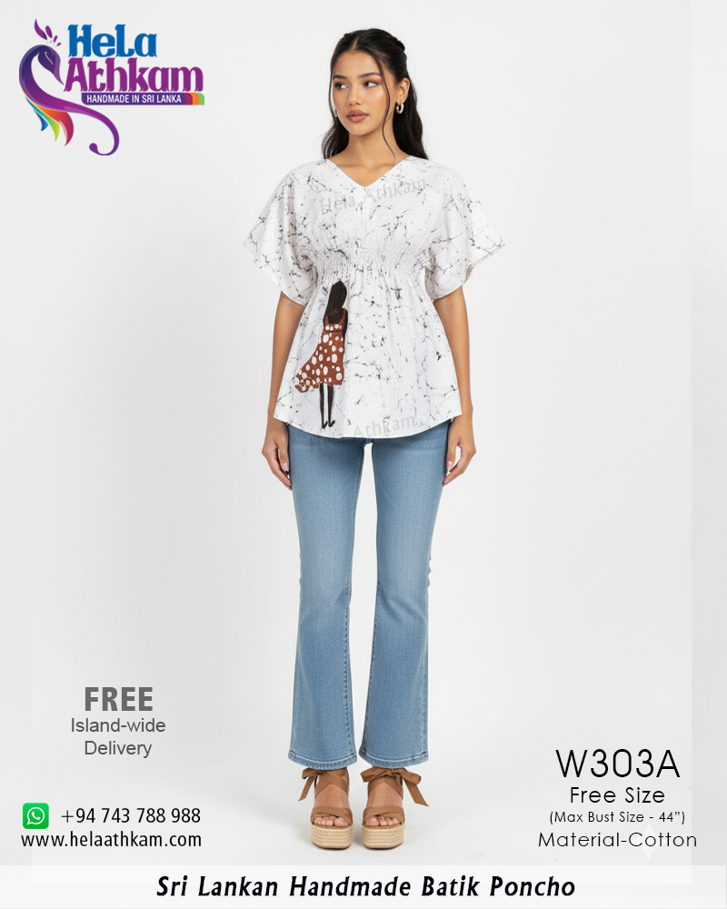 ශ්රී ලාංකීය සාම්ප්රදායික බතික් ක්රමශිල්ප භාවිතයෙන් 100% අතින් නිපැයූ උසස් තත්වයේ නියම දේශීය බතික් පොන්චො ඇඳුමක්.