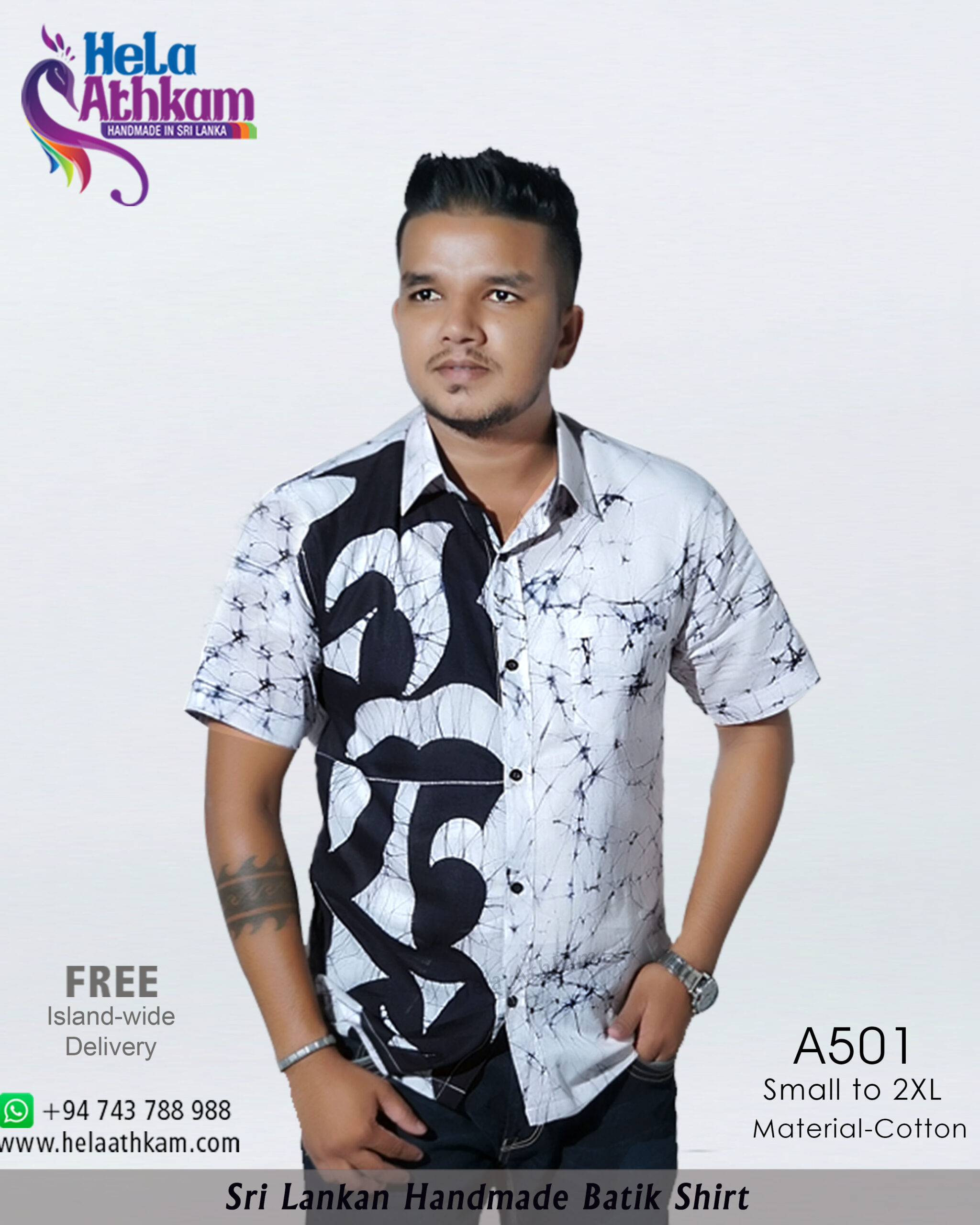* නවීන බතික් විලාසිතා සමගින් අද කාලයට ඔබින අයුරින් සකස්කල උසස් තත්වයේ දේශීය බතික් කමිසයක්.