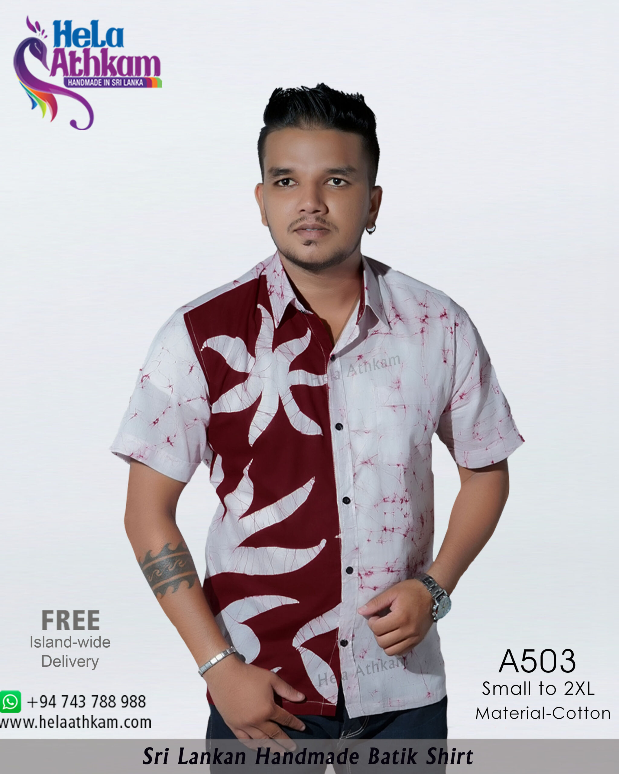 * නවීන බතික් විලාසිතා සමගින් අද කාලයට ඔබින අයුරින් සකස්කල උසස් තත්වයේ දේශීය බතික් කමිසයක්.