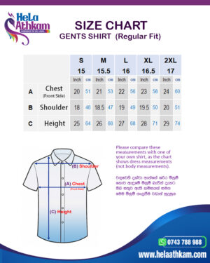 – කමිසයේ ප්රමාණ : Small සිට 2XL දක්වා (15” සිට 17″)