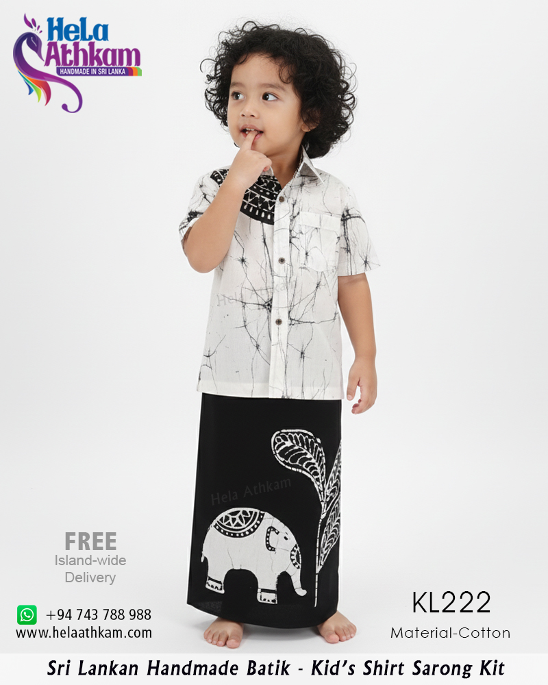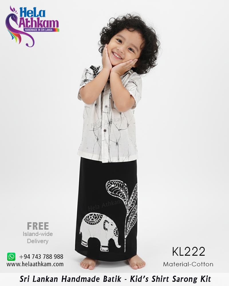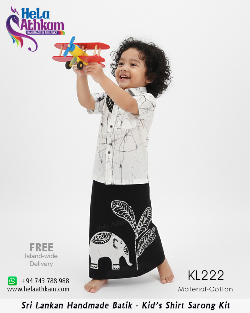 ශ්රී ලාංකීය සාම්ප්රදායික බතික් ක්රමශිල්ප භාවිතයෙන් 100% අතින් නිපැයූ උසස් තත්වයේ නියම දේශීය ළමා බතික් කමිසයක් සහ සරමක්