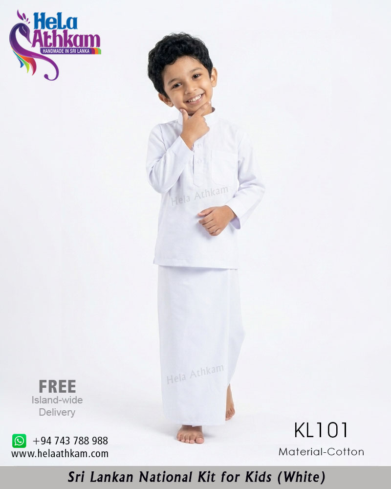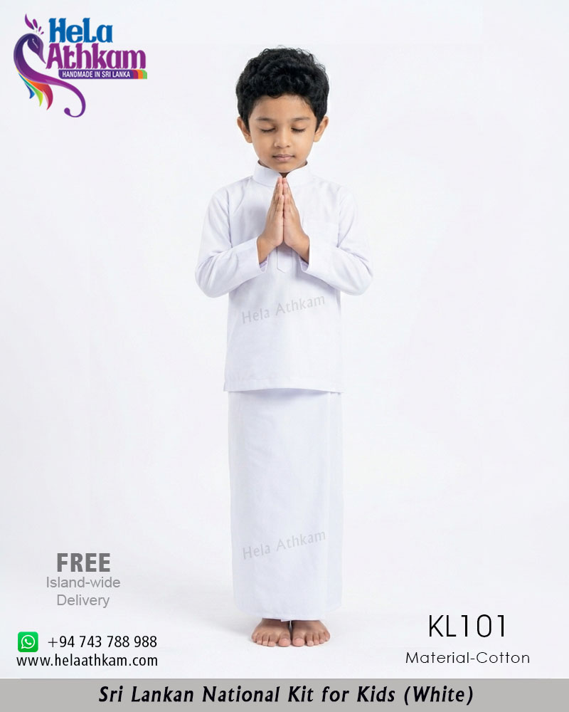 * වයස අවුරුදු 01ත් 14ත් අතර පුංචි පුතුන් වෙනුවෙන් නිර්මාණය කරන ලද තනි සුදු පැහැති ජාතික ඇඳුම.