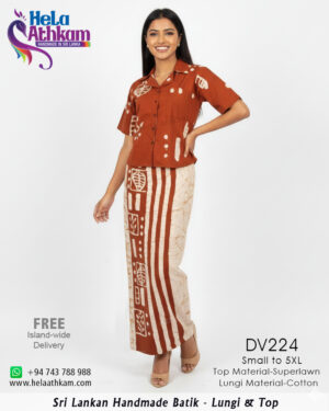 * උඩුකය කොටස ඔබට සරිලන Small සිට 5XL ප්රමාණ වලින් ලබාගැනීමට හැක. පහල ලුන්ගි කොටස ඔබ තොරගන්නා උඩුකය කොටසට ගැලපෙන ප්රමාණයට නිර්මාණය කර ඇත.